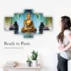 Buddha Set of Five 3D Framed Paintings for Wall Decoration – Ideal for Home, Living Room, and Bedroom (125 x 60 CM)